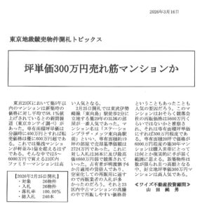 2026年3月16日「坪単価300万円売れ筋マンションか」